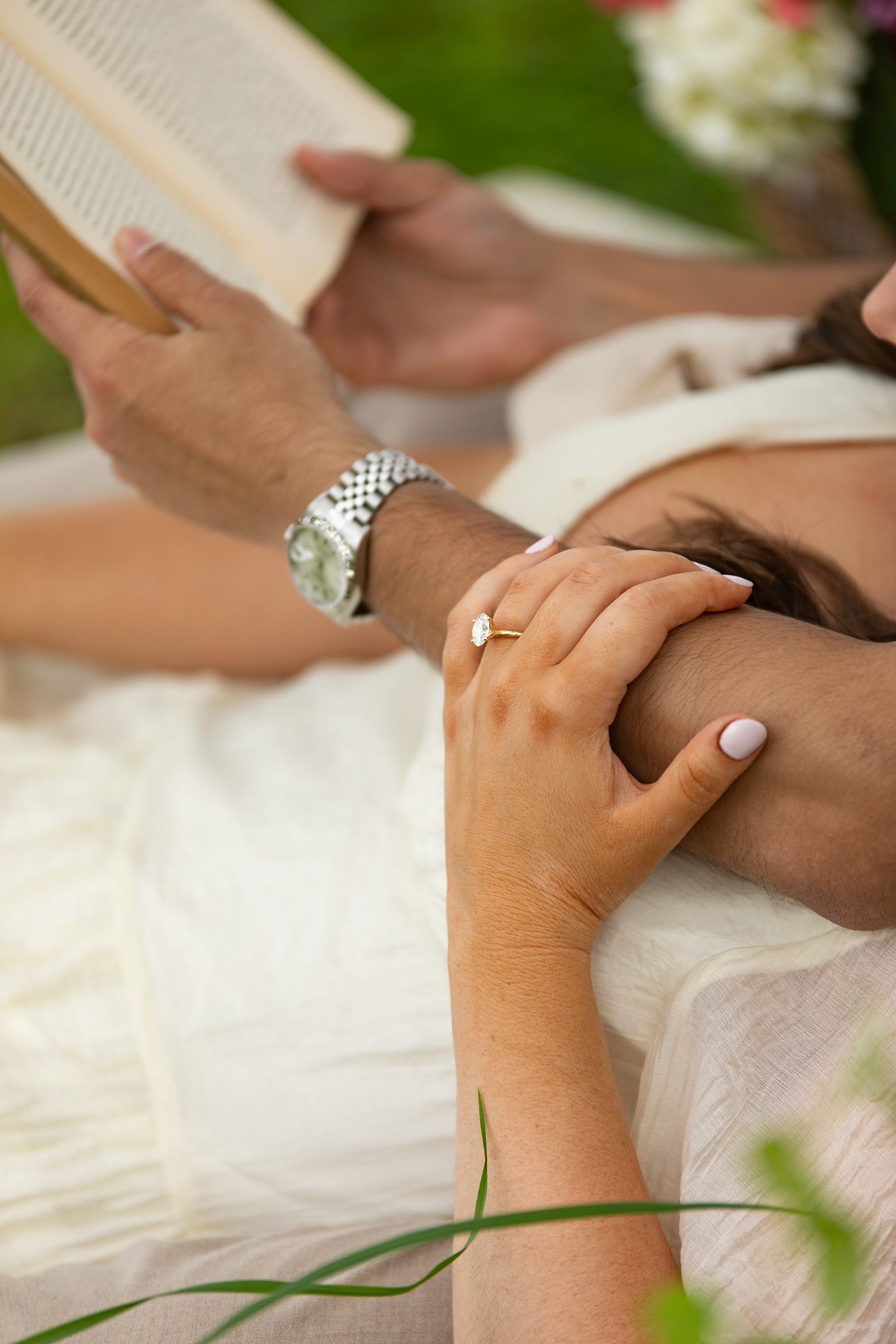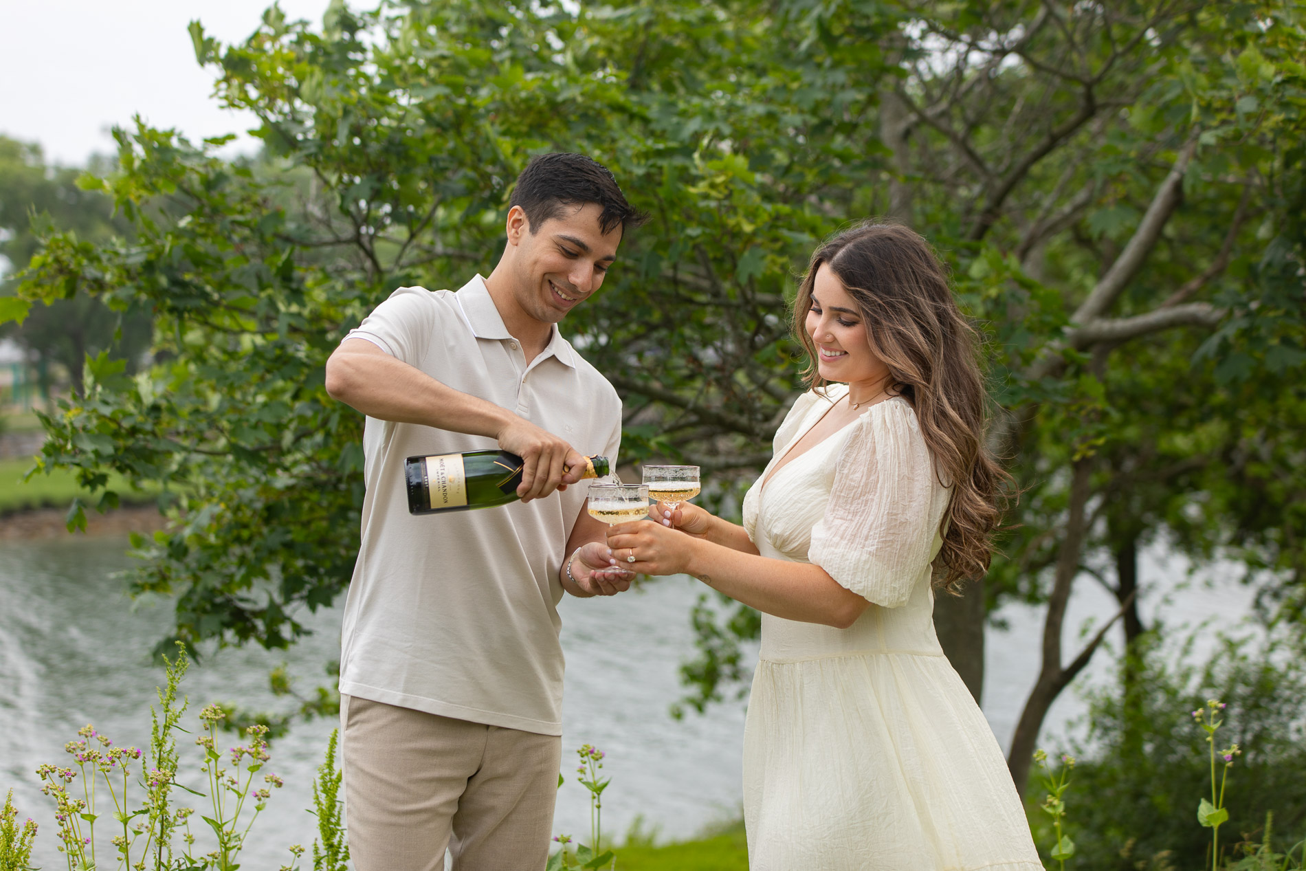 Veronica and John came prepared with thoughtful details that made the session unique. They brought along a picnic basket, books to flip through together, and even actual glassware for a champagne toast. And of course, they chose Moët, because if you’re going to toast to love, why not go all in? These touches created the perfect blend of casual comfort and timeless elegance, giving the photos depth and storytelling elements beyond just portraits.