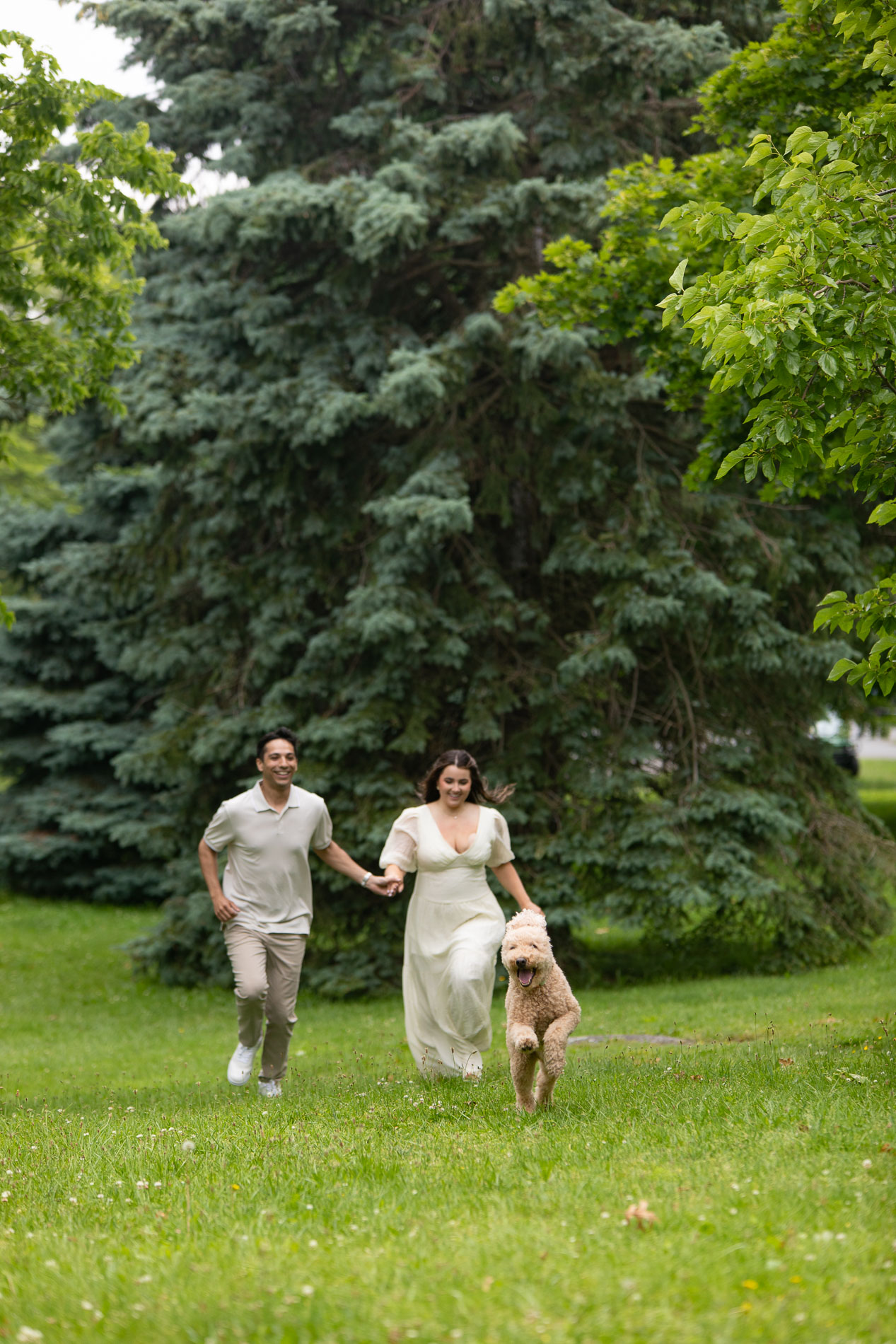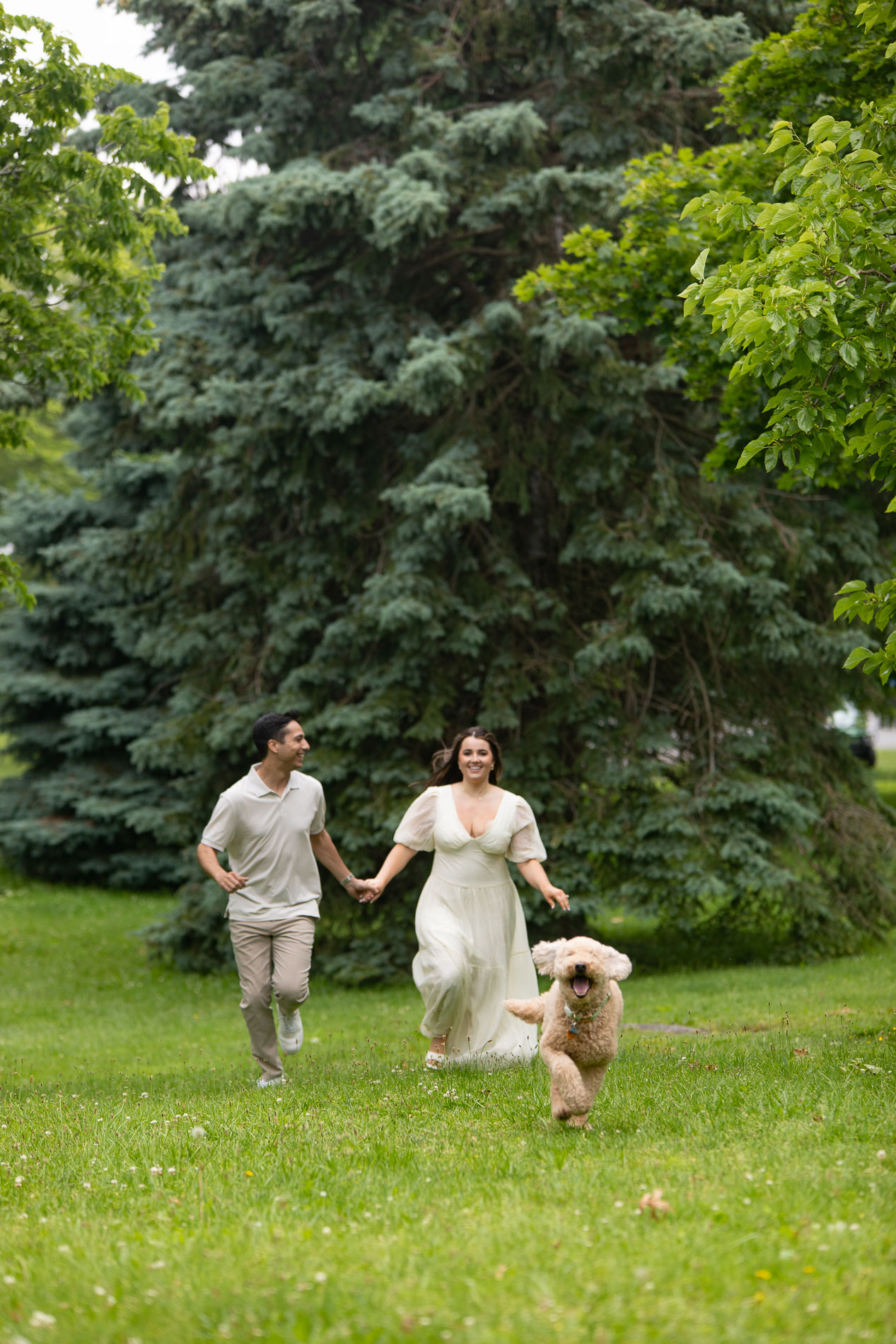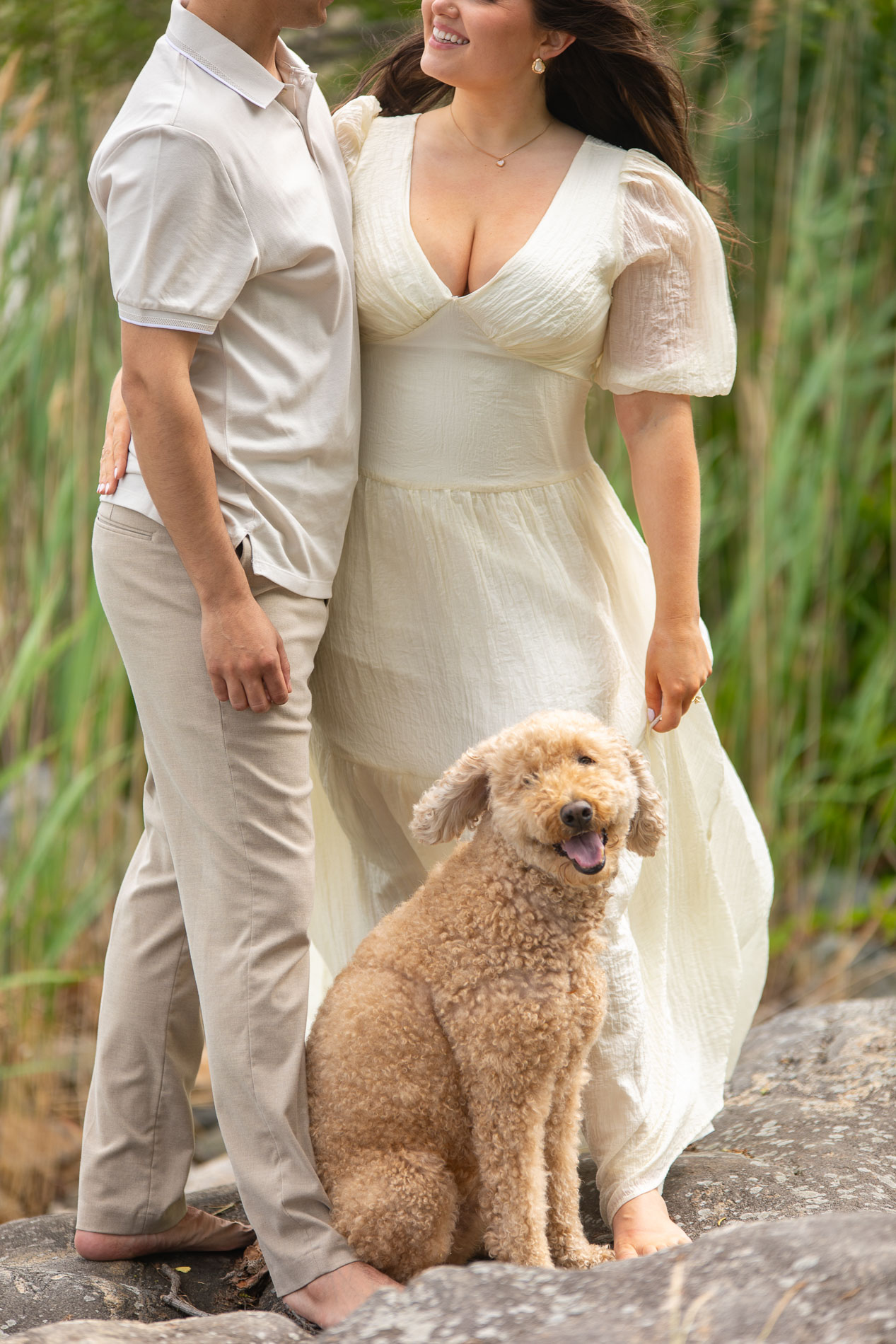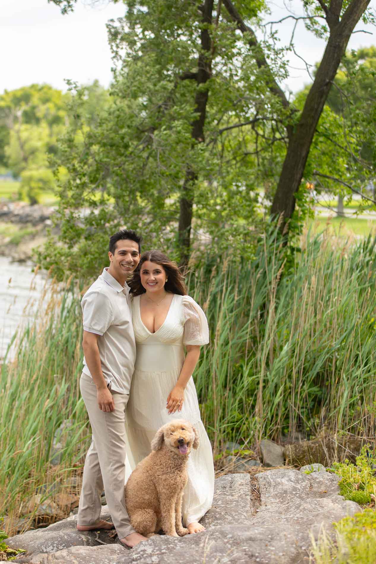 Cashew, by the way, is the sweetest dog you could ever meet. Full of life and energy, he brought his own playful spark to their engagement session. Even though he’s still in training, he did such an amazing job—whether trotting alongside Veronica and John or sitting patiently with “grandma” (Veronica’s mom) when it was time for couple-only portraits. Having him there added warmth and joy to the day, making the photos even more personal and true to who they are as a family.