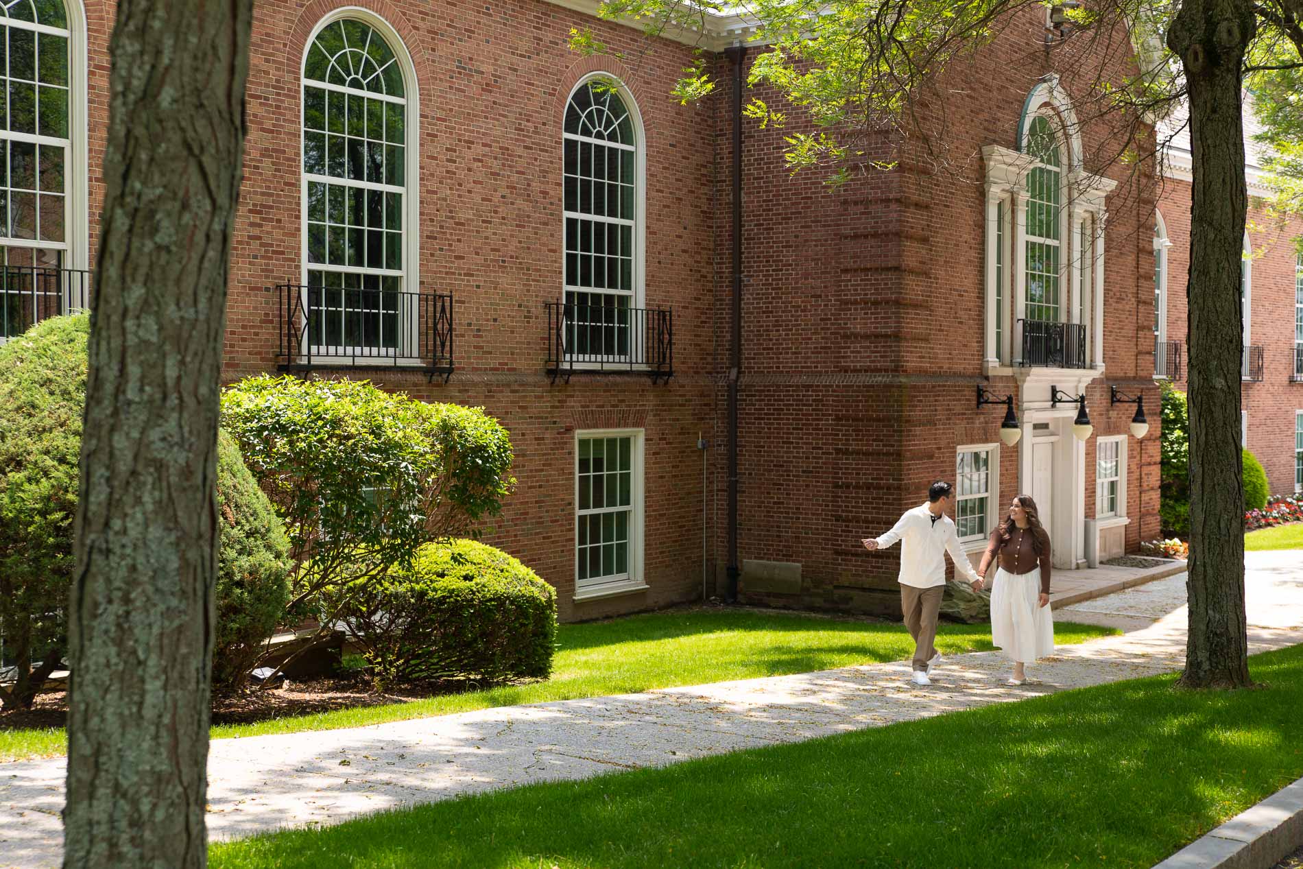 In addition to Glen Island, we knew it was important to include Iona University in their engagement session. After all, it’s where their story began. Walking through campus while it was on break gave us the perfect backdrop for photos without too many distractions. From the brick buildings to the familiar walkways, each spot carried sentimental value for Veronica and John.